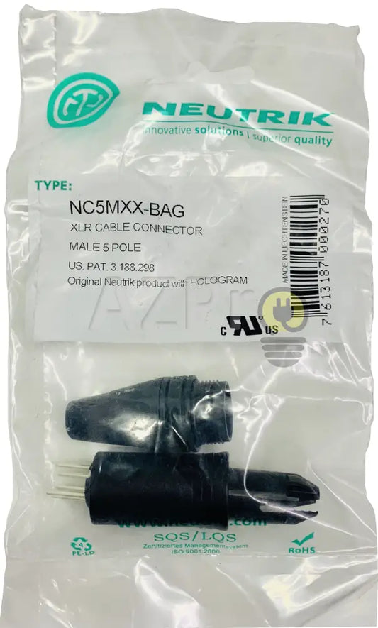 Conector Xlr 5 Pin Macho Linea Negro Plata Nc5mxx-bag Neutrik