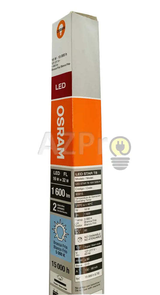 Foco Led Tubo T8 120cm 16w 127-277v 170 grados Cristal 5000k Osram