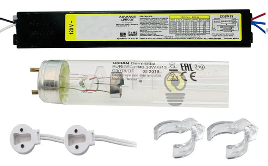 Kit Tubo Germicida 30w + Balastra + Bases Listo para operar KIT 30W Osram