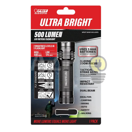 Lampara Tactica Led, Linterna con Zoom, 500 Lumen, AAA, FL500 Feit