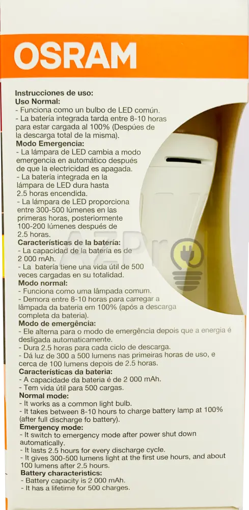 Foco Led Bulb Lampara Emergencia 10w 100-240v Blanco Calido 80107 Osram