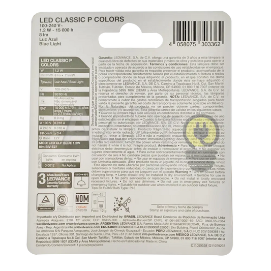 Foco Led Bulb 1.2w 120v E27 Led Classic P Decorativo Azul 80229 Osram