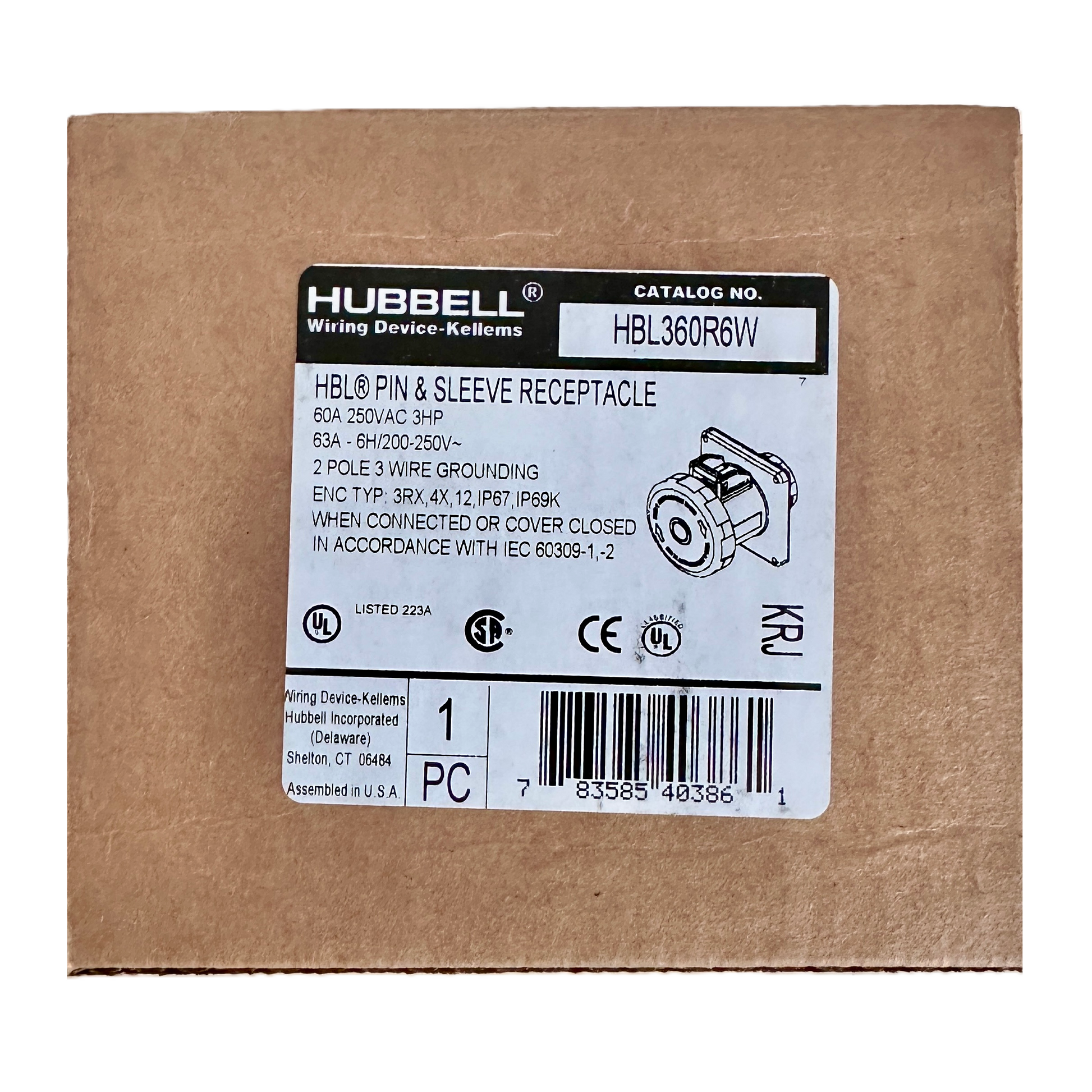 Conector Receptaculo Pin and Sleeve Chasis Hembra 60a 250v HBL360R6W Hubbell